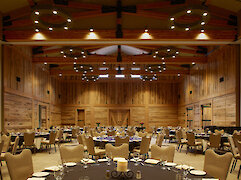 Sundance Mountain Resort's largest indoor function space, the Rehearsal Hall boasts 17-foot ceilings and sliding barn-style glass doors that open to a meadow and pond.