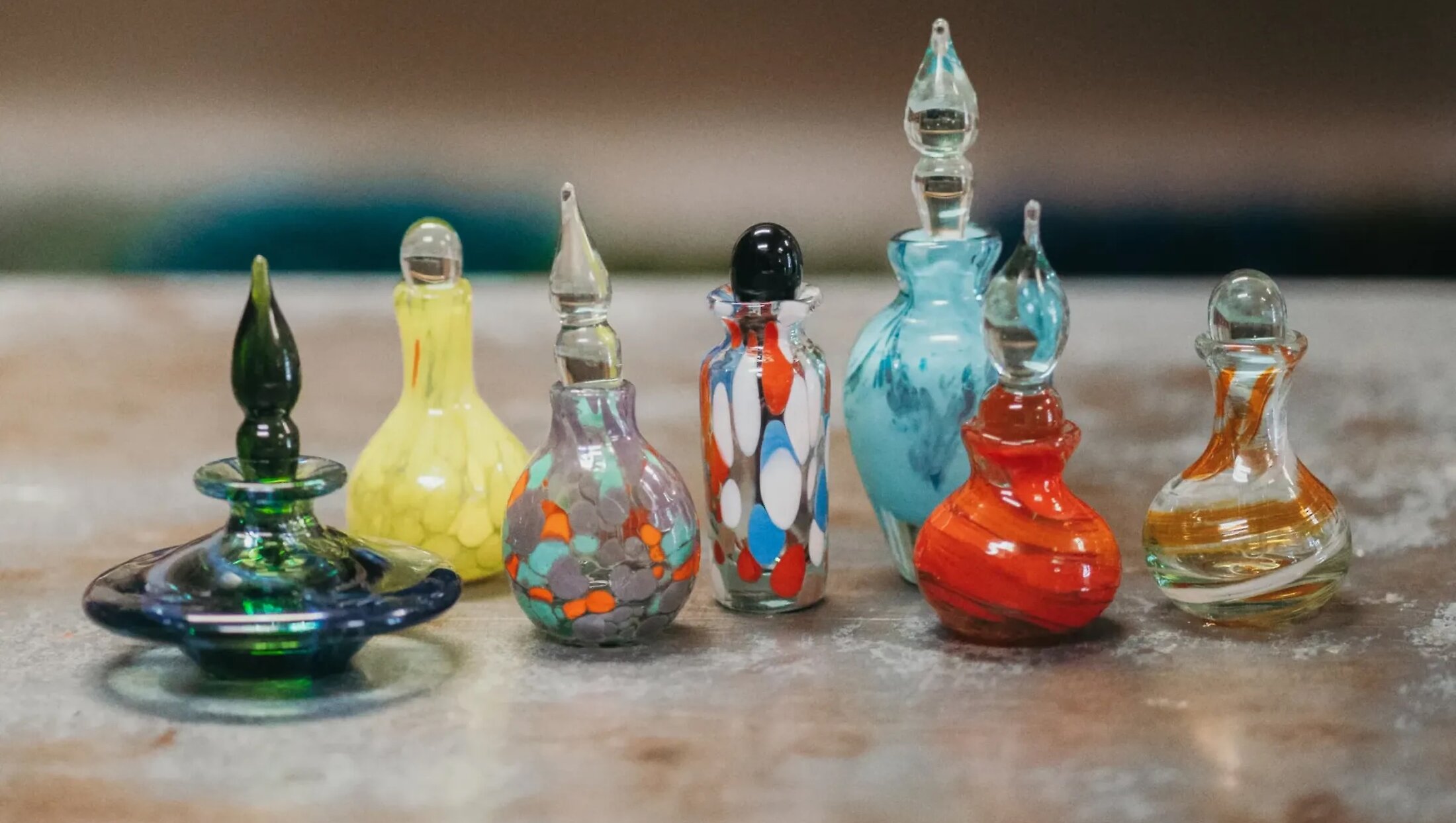 Create your own signature perfume scent using essential oils and natural ingredients. Our instructors will explain the structure and history of scent and introduce over 40 different essential oil options to choose from. Learn the classic French style of perfume making by choosing nine different scents to build your signature perfume’s base, heart, and head notes. One-of-a-kind handblown recycled glass perfume bottles are available as an upgrade in the perfume class.