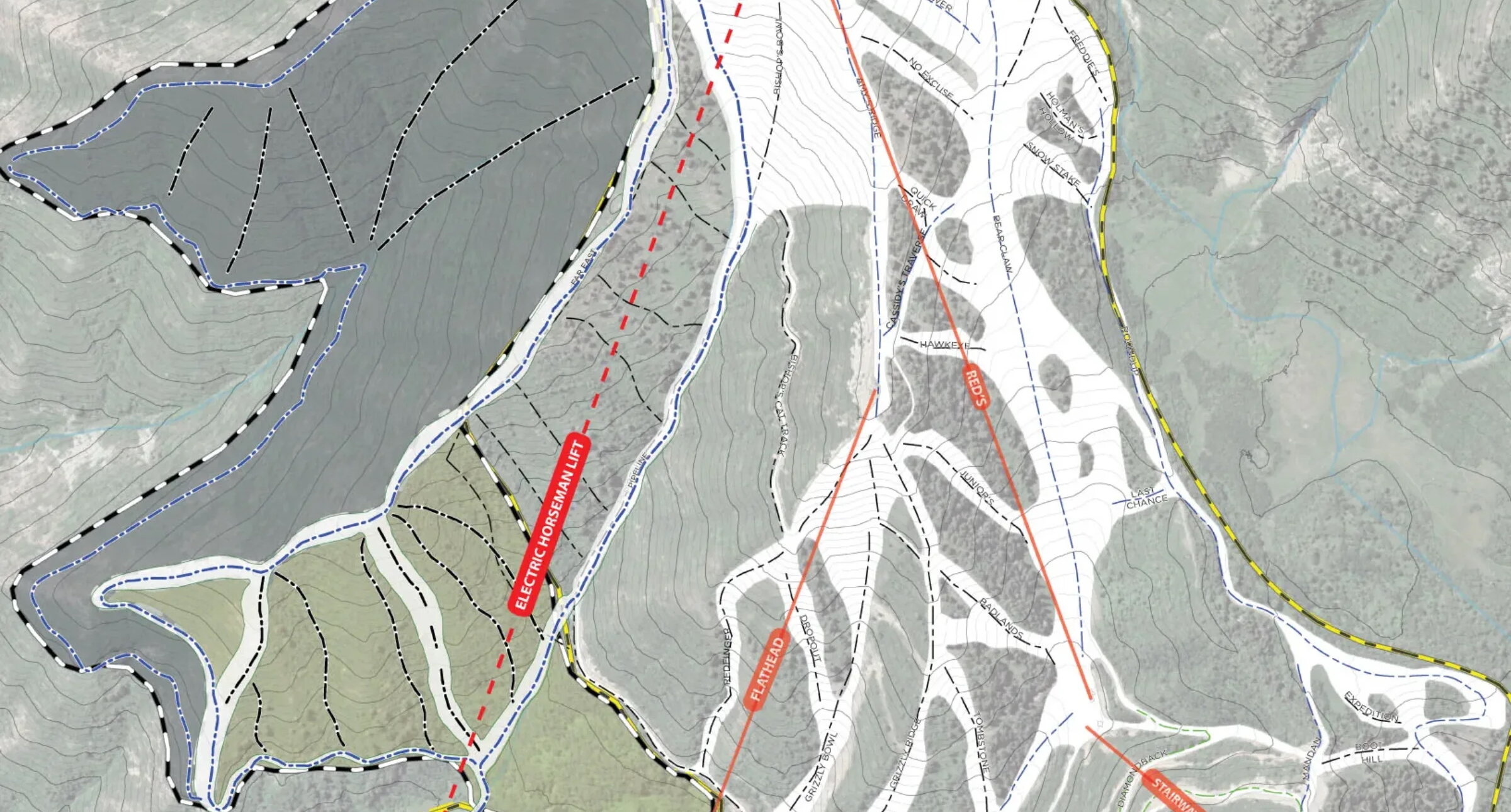 A new high-speed quad for Winter 26/27, opening 165 acres of new skiing and riding on the back mountain through two terrain expansions! The Electric Horseman Express lift will rise 1,850 vertical feet in just six minutes from near the Wildwood base and allow continuous lapping of all new and existing back mountain terrain from Bearclaw Summit.