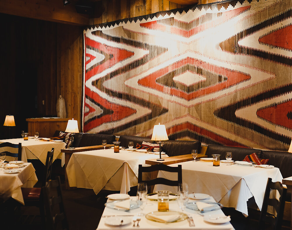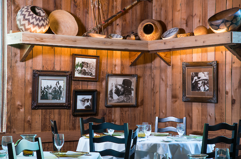 Step into the Tree Room restaurant, which offers more than acclaimed dining, but also a vibrant look into Native American art of many generations. The space—hand-built by Redford himself, including the unique stone and concrete fireplace hearth—immerses you in color, texture, and tradition. The collection includes large rugs and blankets, pottery, kachina dolls, baskets, bow and arrows, and more, all curated and preserved with thoughtful care for decades.
