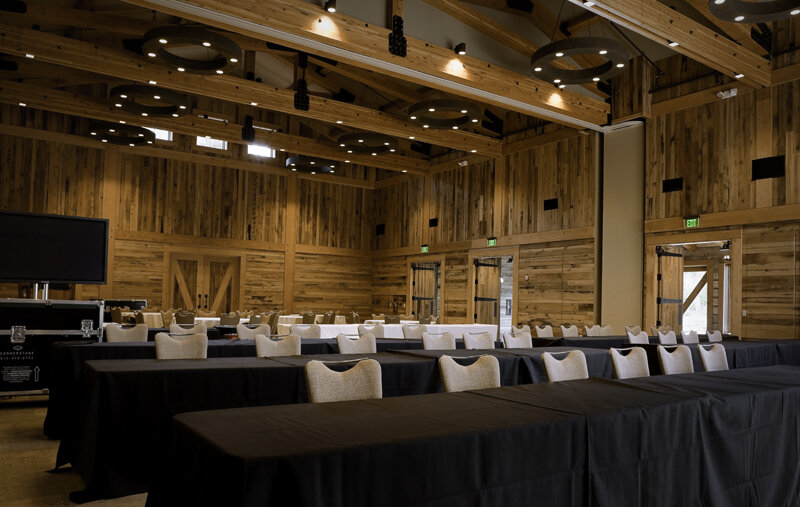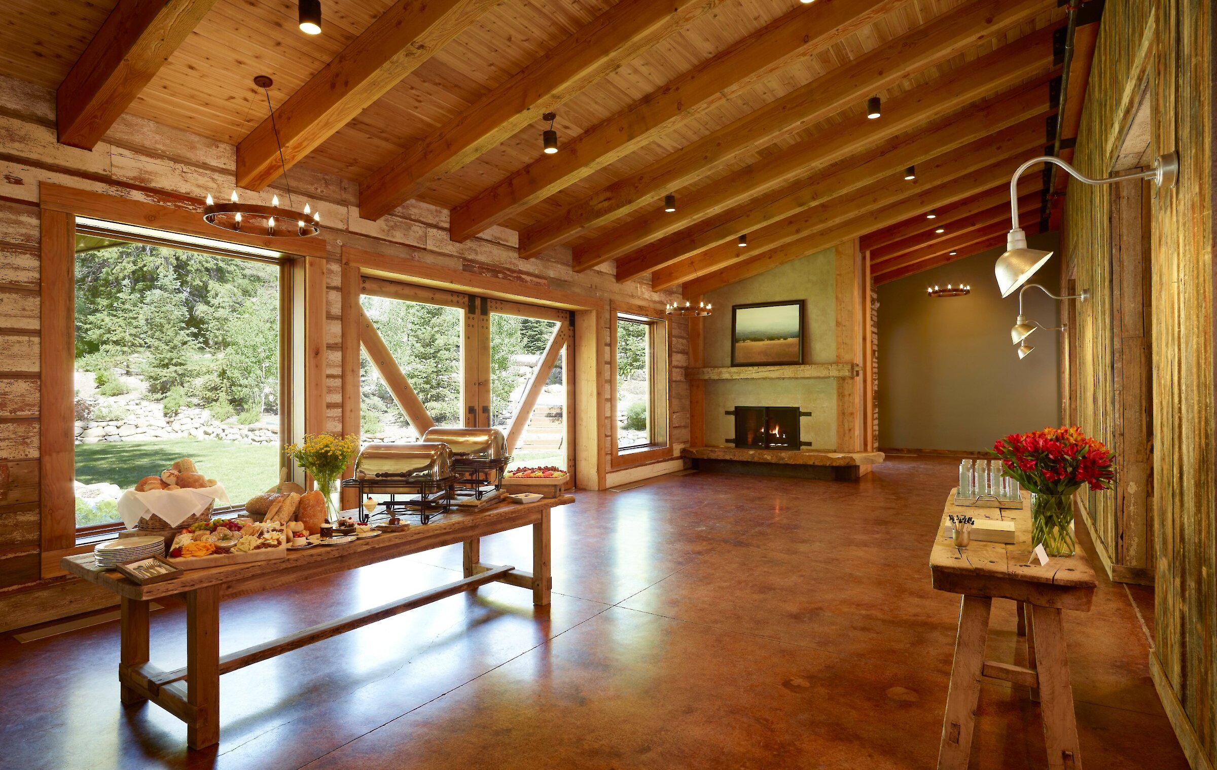 This environmentally-friendly building provides nearly 3,500 square feet of meeting space. The Reception area wraps around the building, which provides a smooth transition from the outdoors to the inner meeting room. The large fireplace in the reception area not only provides warmth and comfort but the design elements are consistent with Sundance Resort’s style of rustic elegance.
