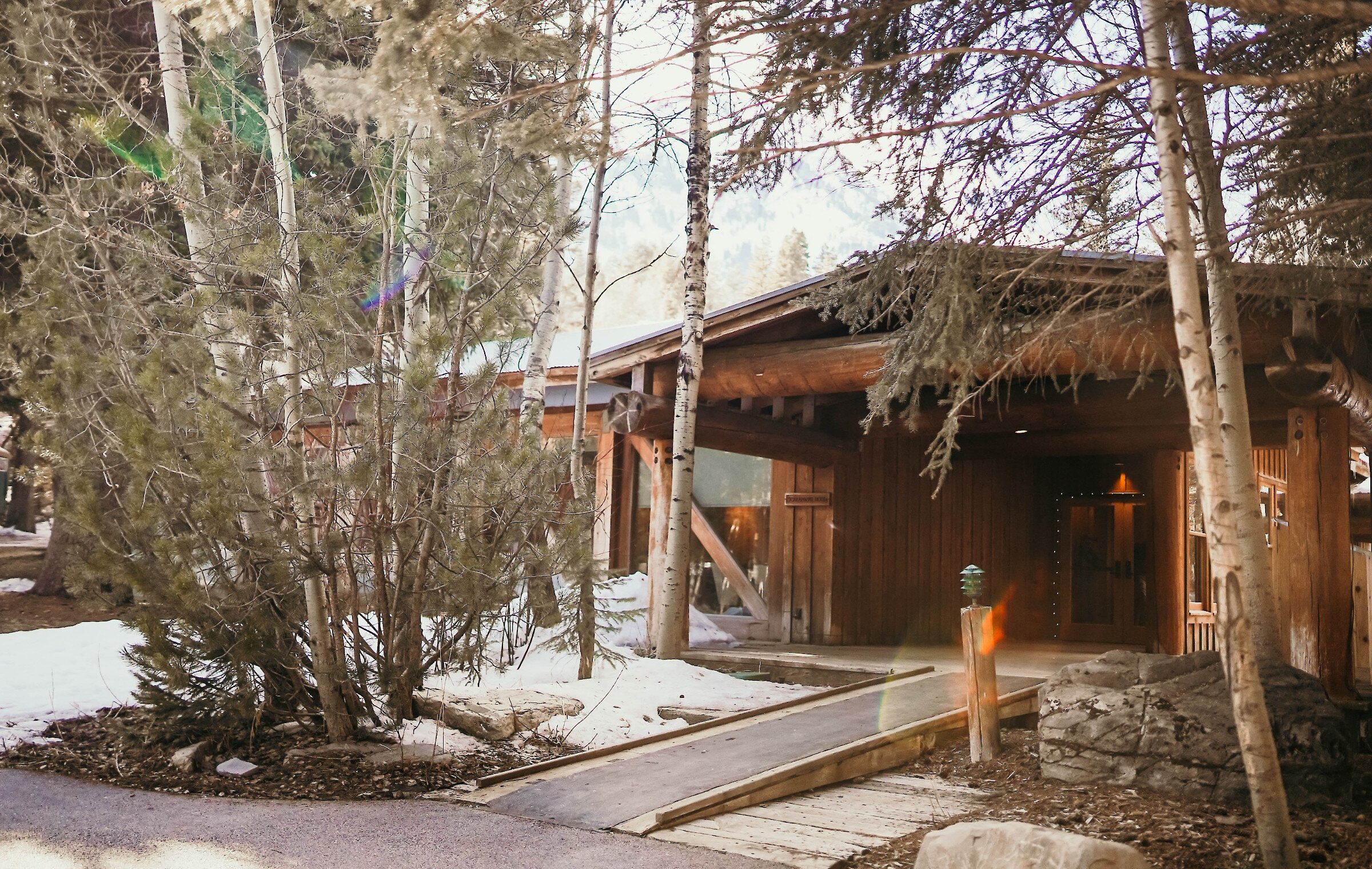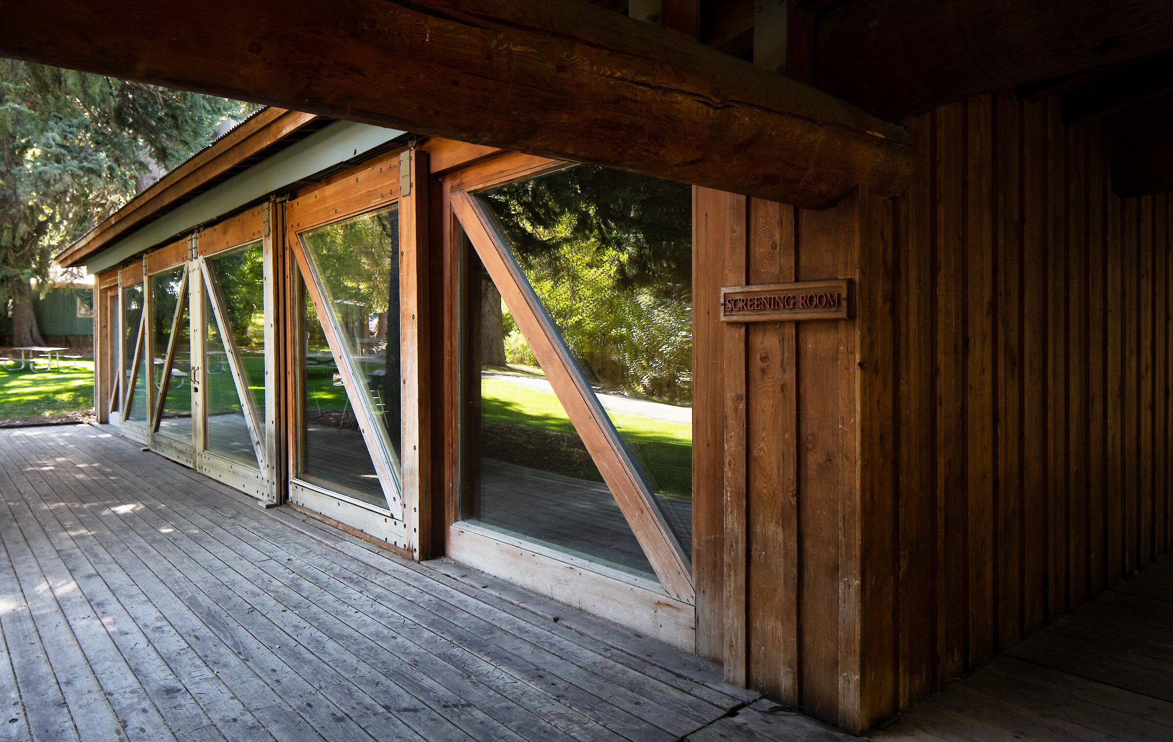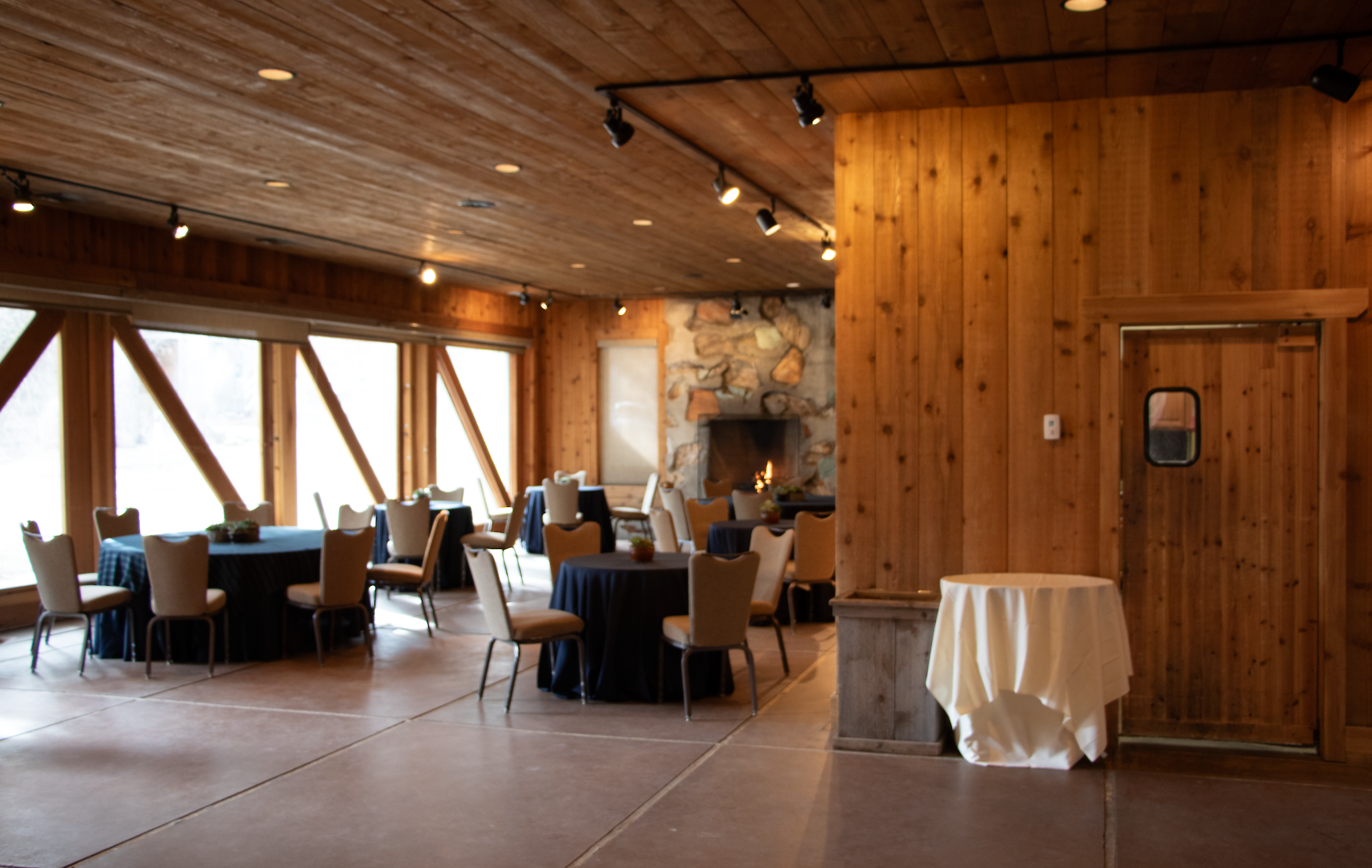The Screening Room was built in 1987 as a place to showcase the work of the Sundance Institute Lab and the Sundance Film Festival. The 1,100 square-foot lobby features stone floors, a fireplace, and sliding glass doors that open onto a lawn overlooking the waterfall and pond. This space is an excellent place for gathering, celebrating, or enjoying a catered meal.